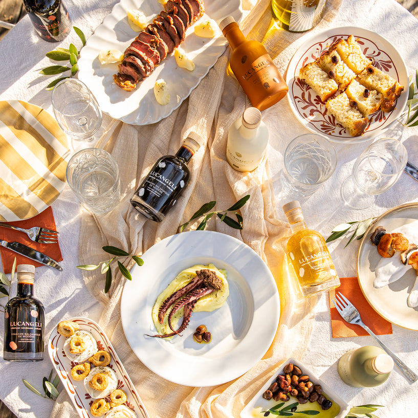 Enjoy the exclusivity of the IGP Balsamic Vinegar of Modena with an intense taste , an exceptional Italian condiment that will enhance your dishes with its fluid texture and refined taste.