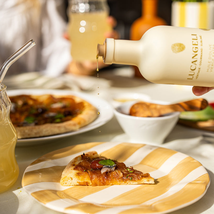 Notre trio parfait d'huile d'olive 200 ml inclut une huile primée, auréolée du prix Épicure Argent 2023 pour sa qualité supérieure dans la catégorie "huile d'olive". Toutes nos huiles italiennes sont certifiées biologiques , produites via un procédé artisanal et offrent une harmonie gustative unique grâce à leur extraction à froid.