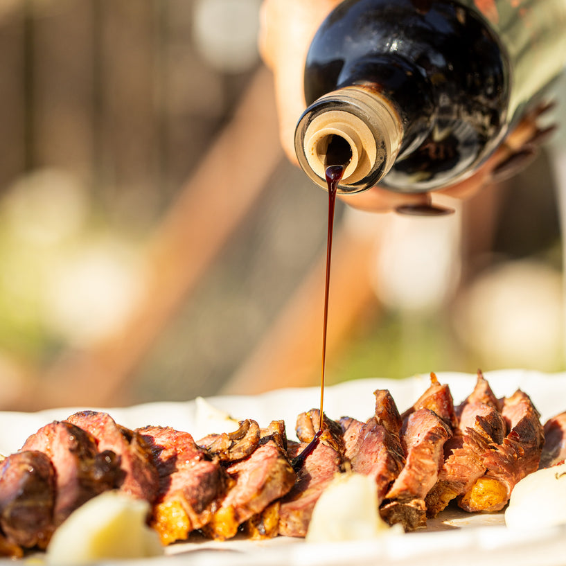 Esalta i tuoi formaggi, la frutta fresca o i dolci con questo aceto balsamico di Modena IGP alla cipolla rossa . La sua consistenza densa offre un sapore dolce-aspro, perfetto per bilanciare insalate, marinate o vinaigrette. Questo condimento italiano , ricco di antiossidanti, apporta una nota di raffinatezza e genuinità alla tua cucina. Il suo gusto squisito, derivante dall'invecchiamento in botti di rovere, unisce la dolcezza caramellata della cipolla rossa con l'acidità dell'aceto balsamico tradizionale . Un tocco di gastronomia italiana per buongustai!