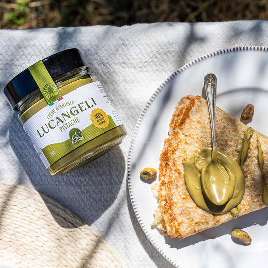 Godetevi la nostra crema spalmabile al pistacchio al 40% , una deliziosa crema spalmabile artigianale ideale per i buongustai. Realizzata con cura, questa crema spalmabile offre un sapore unico e intenso, grazie ai pistacchi verdi accuratamente selezionati...